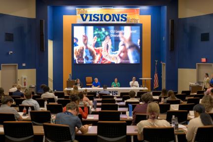 Visions' Veterans Program offers a variety of bonuses for veterans and their spouses, a waiver of minimum balance fees for their Flex Checking Plus account, and a unique scholarship opportunity for veterans' children and dependents. The focus of the check presentation, however, was tied to Visions' new Americana debit card.